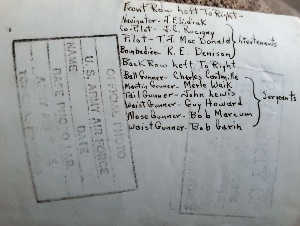 Waist Gunner – Guy Howard – Guy Walter Howard – b. Nov. 11, 1924 – d. Aug. 17, 2015