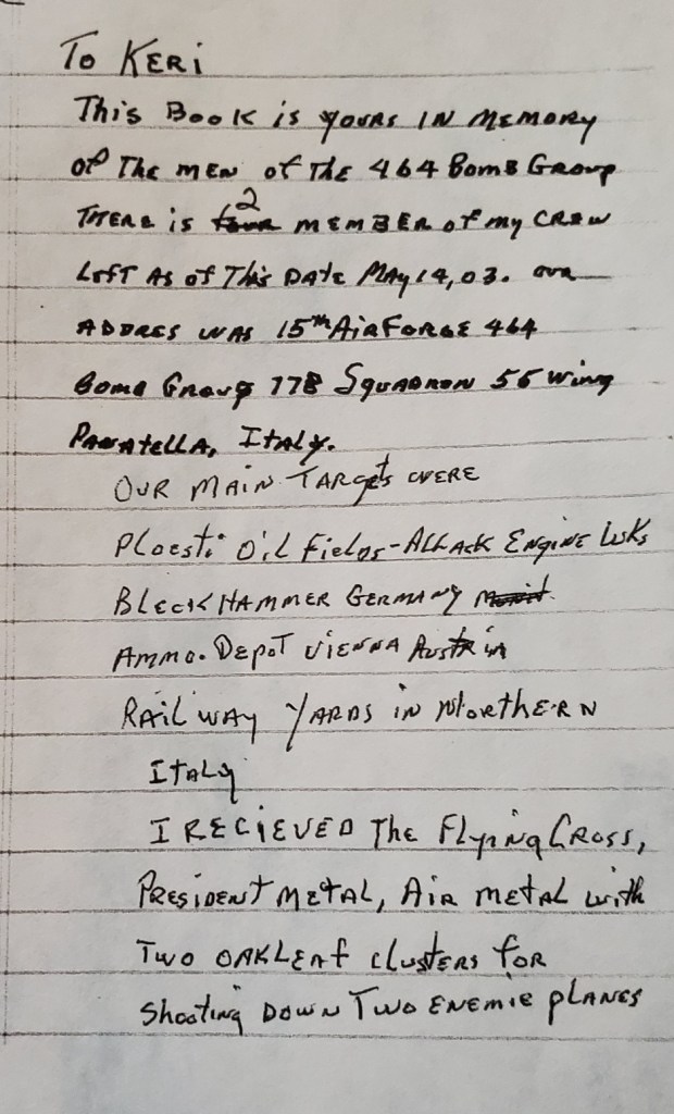Thank you again for your service to our country. I have enjoyed learning more about the aircraft the “Little One” B-24 Liberator.