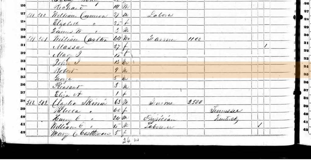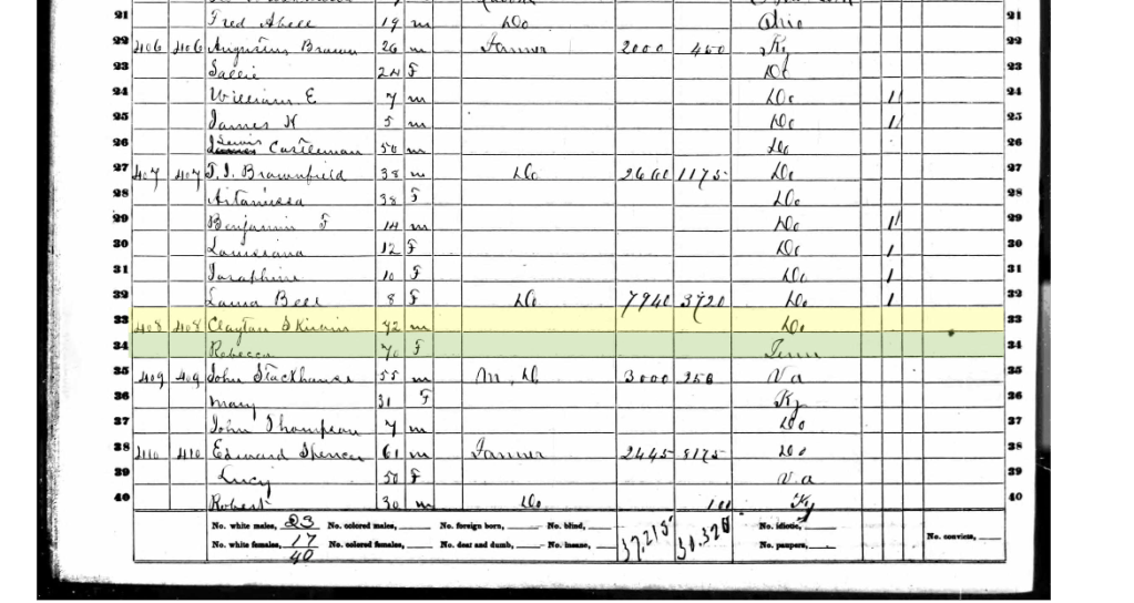 Henry Clayton and Rebecca Skirvin 1860 Kentucky Census