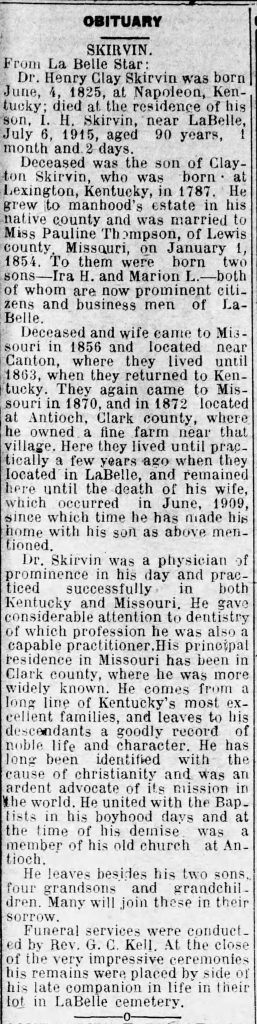 Dr. Henry Clay Skirvin’s Obituary