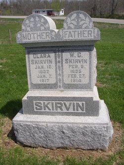 William C Skirvin was born on February 28, 1835, in Gallatin County, Kentucky. He married Clarissa Wilson (1832-1917) on June 21, 1858, in Owenton, Owen, Kentucky. This couple had four sons, Calvin (1860-1922), Edwin (1862-1941), John (1863-1934), and Richard Skirvin (1866-1954). William died on February 27, 1914, in Owen County, and Clarissa died on January 7, 1917, also in Owen County.